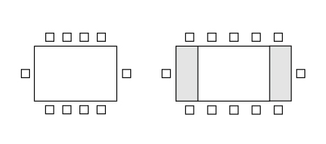 - A200 dimensioni top vetro: 100cm/39¼” x 200cm/78¾” (+48cm/18¾”+48cm/18¾”)
